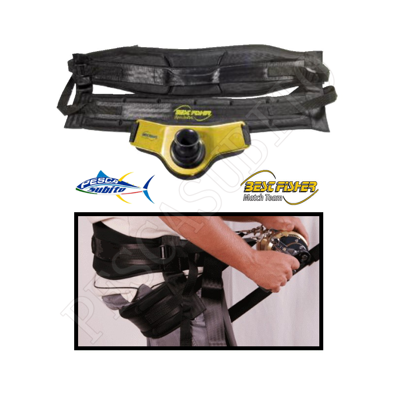Dispone di sgancio rapido per essere indossata in pochissimi secondi e fasce con moschettoni per agganciare il mulinello.