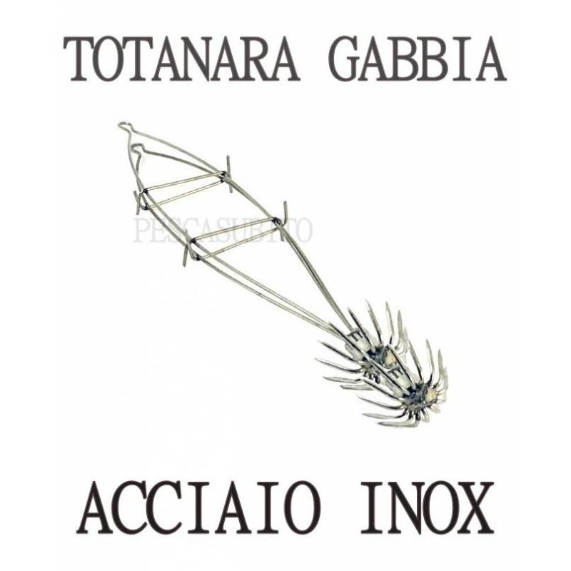 Totanara per la pesca al calamaro e al totano. Gabbia per inserimento di sardina o filetto di altro pesce. Per utilizzarla bisogna mettere un piombo in testa tramite l'ausilio di un moschettone, il peso del piombo varia in base alla corrente del mare e alla profondità dove si vuole far pescare la totanara. Il piombo in testa, consente alla totanara di effettuare un movimento molto adescante per i nostri amici calamari e totani, che non tarderanno ad attaccare l'esca e i tentacoli rimarranno impigliati al doppio cestello di ami.