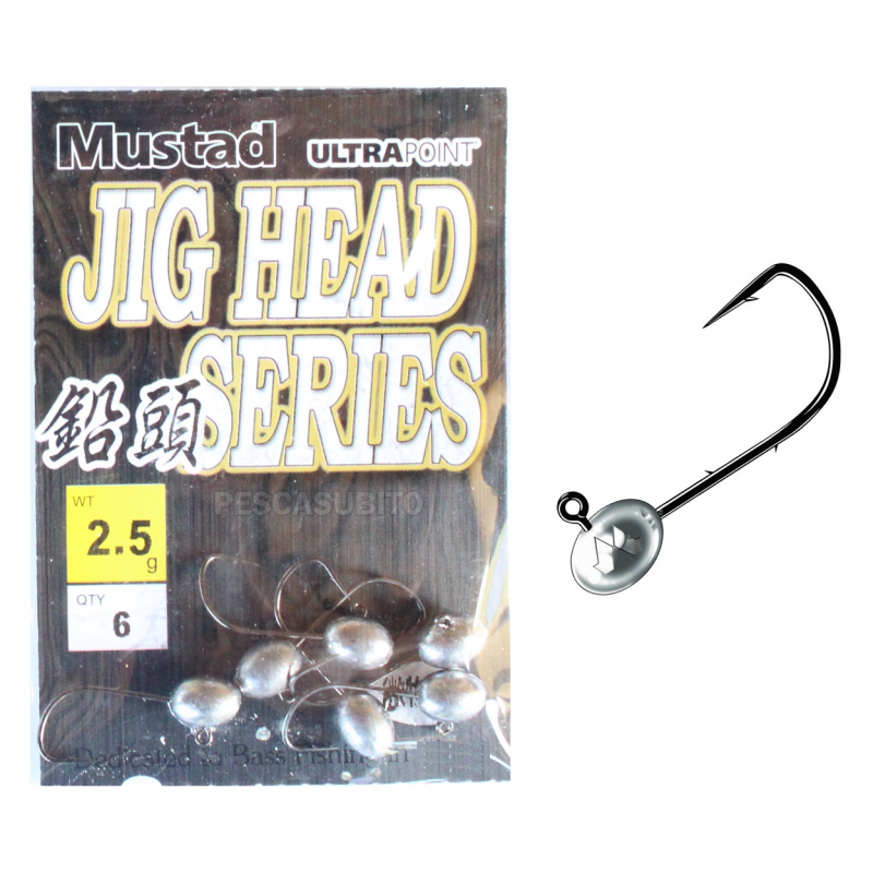 Jig Head Series MUSTAD, Ami al carbonio con eccellente tenuta e punta ultra penetrante affilata chimicamente, sul gambo sono presenti due micro ardiglioni disassati per trattenere l'esca. Ottimi per il light spinning, trout area e light rock fishing