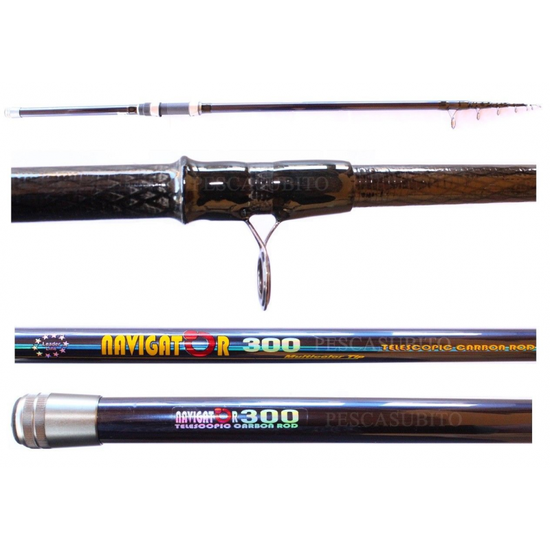 Canna telescopica da barca in carbonio a nido d'ape rinforzato, anelli legai a doppio ponte, vettino in vetro pieno multicolor (solid tip). Ottimo rapporto qualità/prezzo.