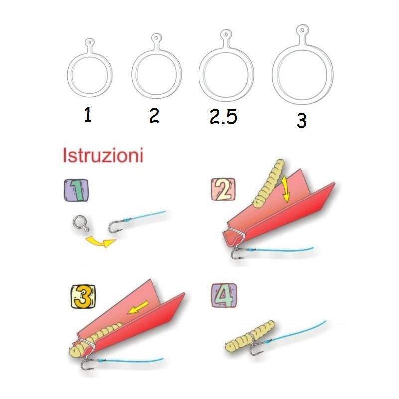 24 ANELLINI ELASTICI + INSERITORE CHE FACILITA L'INSERIMENTO DELLE ESCHE