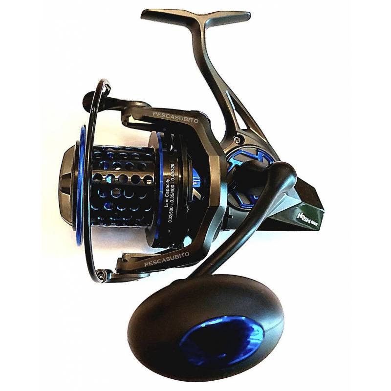 Mulinello di alta gamma, concepito per la pesca a surfcasting, bolentino e carpfishing. L'imbobinamento è a spire incrociate, aumentando notevolmente i lanci a lunga distanza. Il corpo è in metallo molto resistente e non flette sotto sforzo, permettendo un recupero agevole anche nei combattimenti con grosse prede. La bobina è in alluminio anodizzato, molto alleggerita per contenere il peso. Veramente un buon mulinello proposto a un prezzo molto invitante.