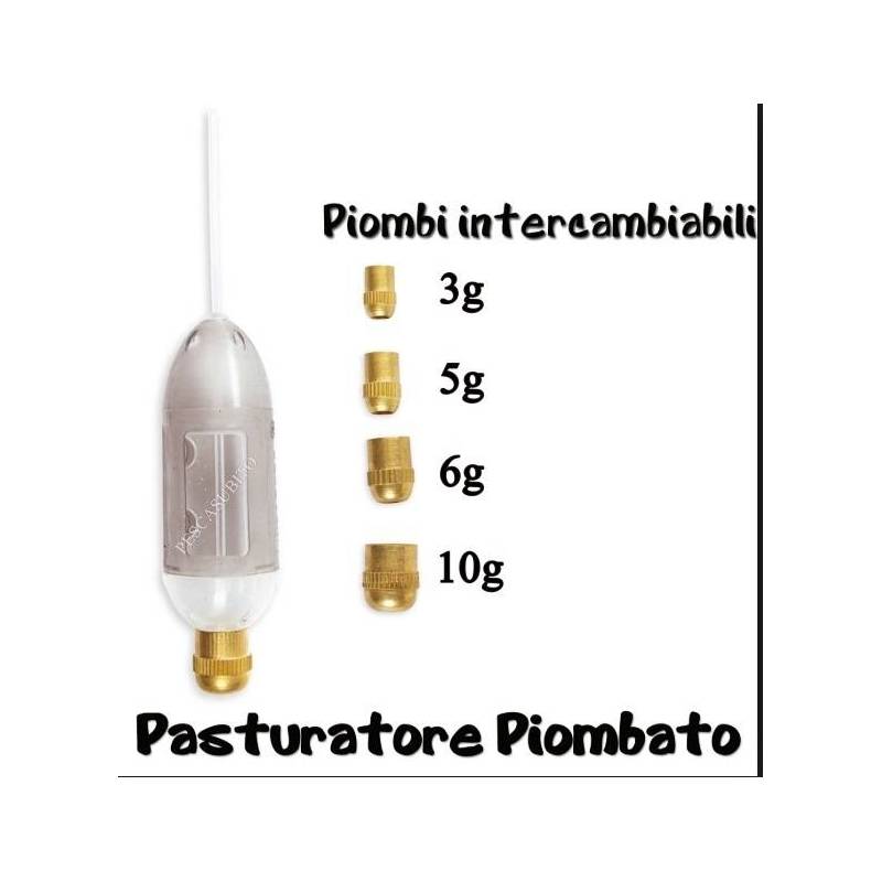 Pasturatore scorrevole con flusso regolabile e pesi intercambiabili, ideale per l'inserimento di bigattini. Ottimo per la pesca a ledgering e per la pesca a recupero dalla spiaggia.
