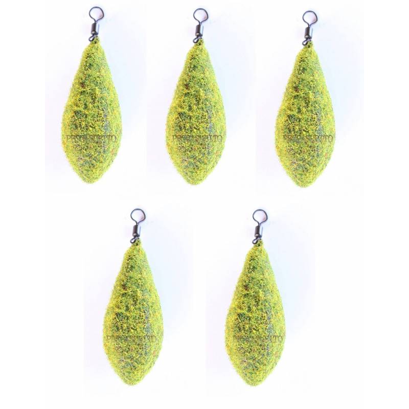 Piombi modello Long Dinstange con particolare rivestimento ad effetto alga. Permettono di mimetizzarsi perfettamente su fondali algosi. i particolari fanno la differenza...