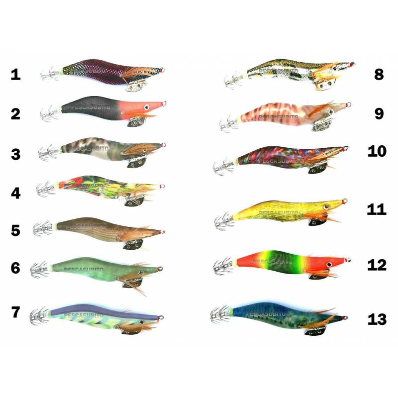 Totanare ricoperte in seta con il corpo interno fluo che in condizioni di poca luce, emana un leggero bagliore. L'assetto in acqua è a 45 gradi, imitando alla perfezione l'andatura di un vero gambero. Le colorazioni sono molto adescanti e il morbido velo di seta che le ricoprono, permettono alla seppia di rimanere più tempo avvinghiata alla stessa, premettendo una più facile opportunità di cattura.