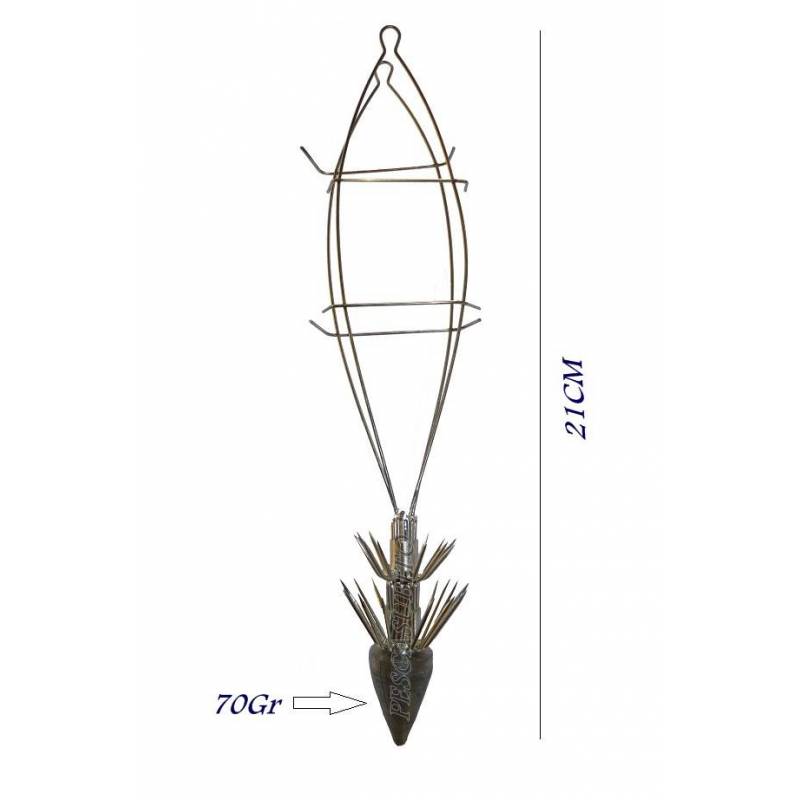 Totanara in acciaio inox a a gabbia con doppio cestello e piombo da 70Gr.